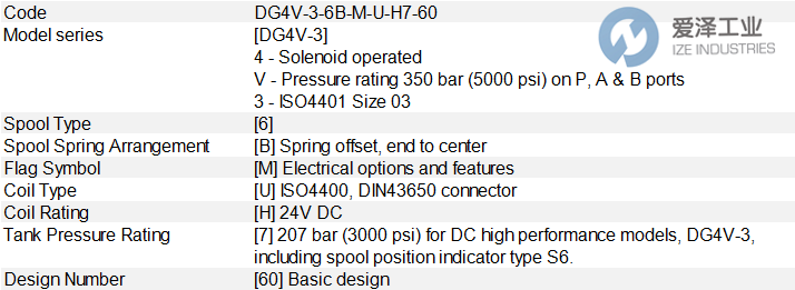 VICKERS液壓閥DG4V-3-6B-M-U-H7-60技術(shù)參數(shù)介紹