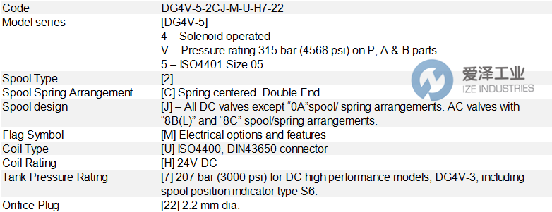 VICKERS液壓閥DG4V-5-2CJ-M-U-H7-22技術參數介紹